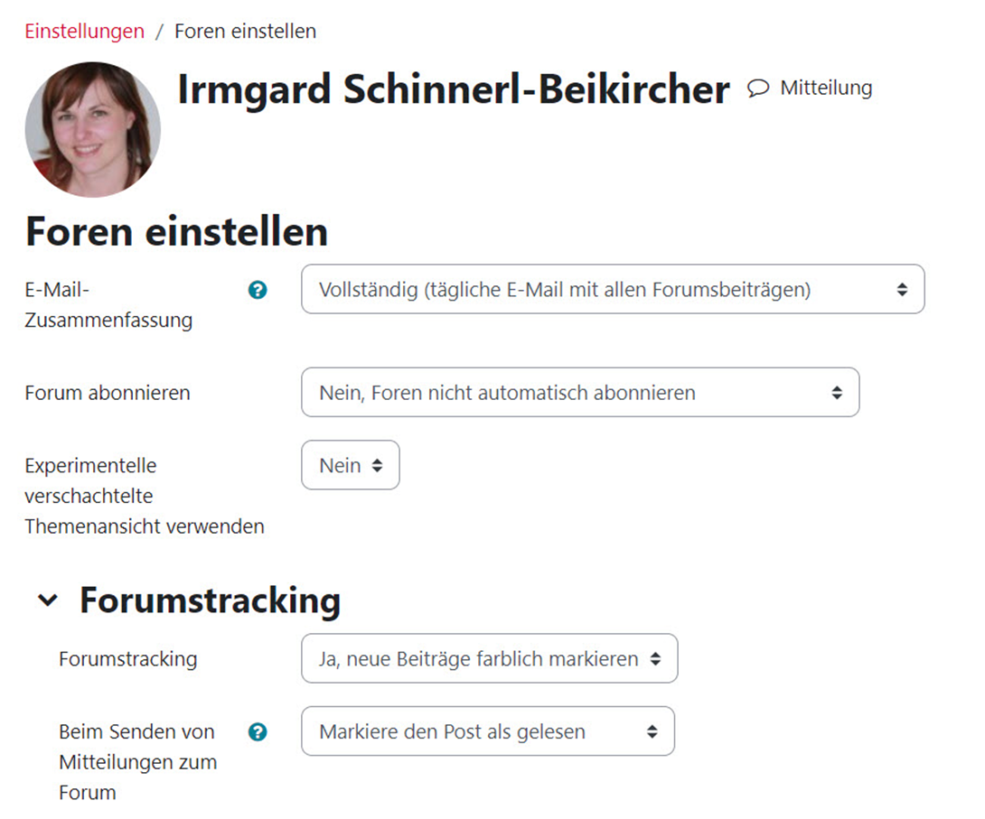 4. Schritt: Weitere für Sie relevante Einstellungen sind die Forumseinstellungen. Klicken Sie unter Nutzerkonto auf „Foren einstellen“.
