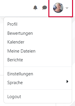 1. Schritt: Klicken Sie rechts oben auf Ihre Kürzel und wählen Sie im Dropdownfeld Einstellungen aus.
