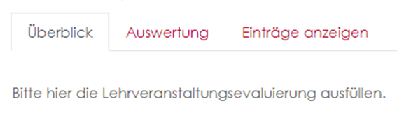 - Sie sehen nun 3 Karteireiter: Überblick, Auswertung, Einträge anzeigen.